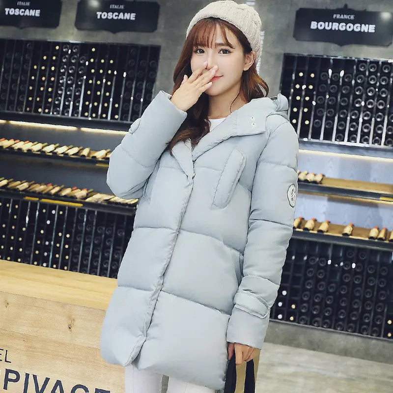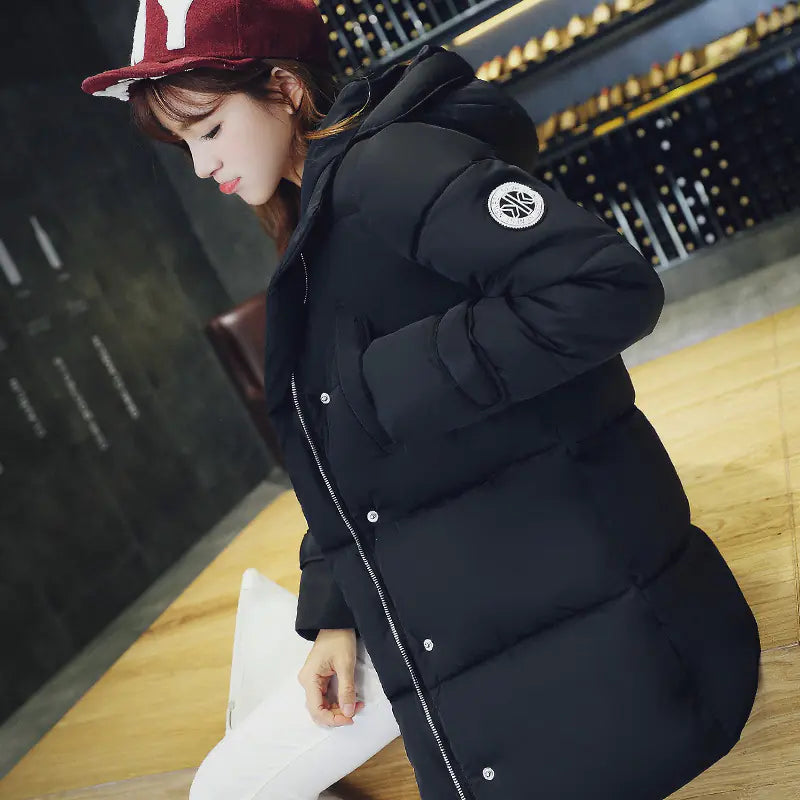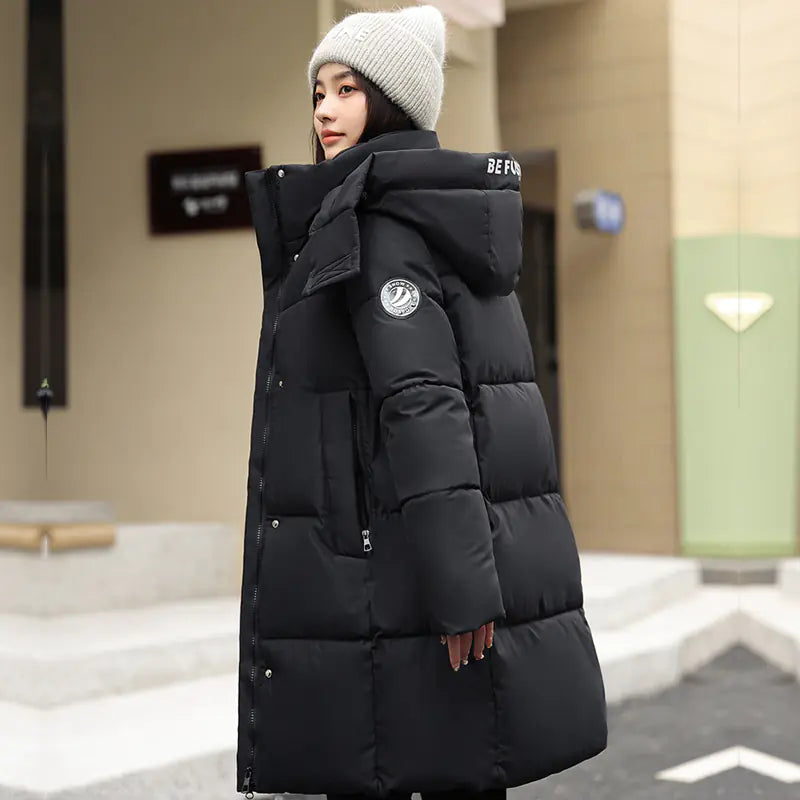 Abrigo de Algodón Acolchado de Corte Delgado y Longitud Media